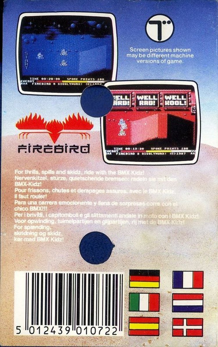 In this game, the player must compete against five BMX riders in a race against the clock. There are six tracks in the game, complete with stunts and wheelies that the player must accomplish in order to proceed onto the next track. Riding the bike causes energy to be lost, but soda cans can be collected to replenish it. Also, doing stunts causes the player to crash down hard, losing spokes (wheels). Replacement spokes, like the soda cans, can be collected along the way. The game ends when the player does not qualify, runs out of time, or has no spokes left.