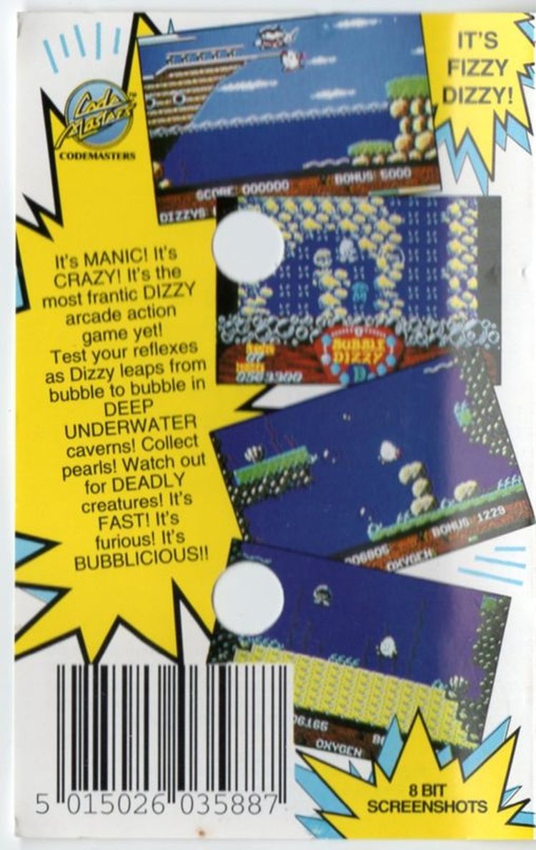 You must guide Dizzy through the underwater worlds, collecting pearls as you go. Dizzy starts at the bottom of the sea, and you have to get him to the top. You do this by jumping across bubbles, which only have a limited time before bursting. Enemies to avoid include sharks, octopuses and swordfish. Dizzy has limited oxygen, but more can be collected from O2 canisters.