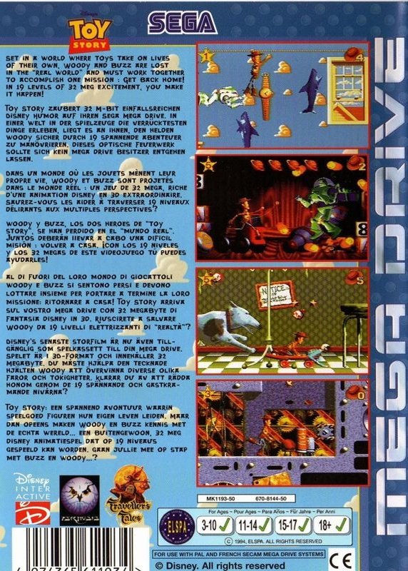 This game is based on the movie “Toy Story”. It sets you as the character of Woody as you jump, swing, and drive to the end of each level. Each level contains familar scenes from the movie. The gameplay consists of the platform\sidescrolling kind. You use Woody’s pullstring to defeat enemies like sharks, Mr. Potatohead, and Ham. After each level, you are treated to still images from the movie.