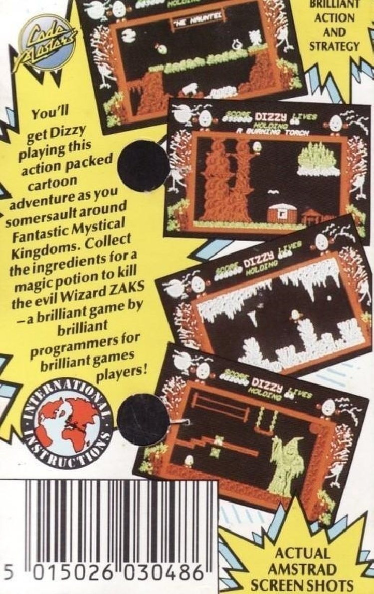 The game is a platform adventure where Dizzy must search the fairy tale land of Katmandu for a Leprechaun’s Wig, a Cloud’s Silver Lining, a Vampire Dux Feather, and a Troll Brew and deposit them in a cauldron to make a potion to defeat the evil wizard Zaks. The gameplay involves collecting items and moving to other locations where the item is required; for example, at one point a raincoat is needed to protect against damaging rain. This is made more difficult because only one item can be carried at any given time.