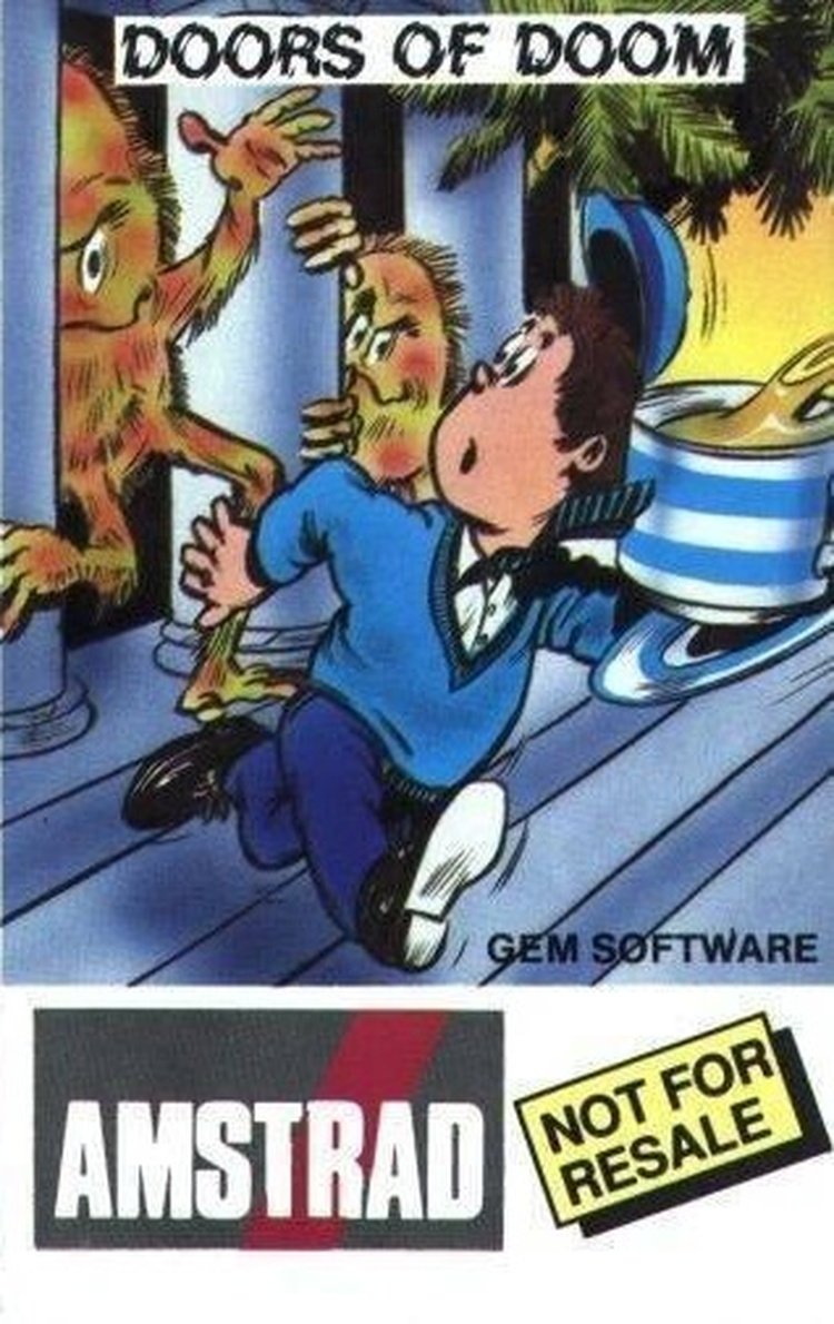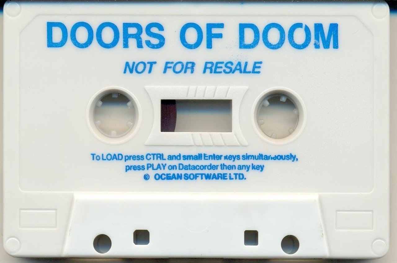 Doors of Doom is an arcade adventure with three difficulty levels, featuring a hapless hero armed only with a laser gun, who has to defeat legions of rogue robots in order to find the missing sections of a weapons system which will allow him to assemble the three Doors, in order to pass the test which will allow humanity to become part of the Galactic Federation. Features an unusual option to allow you to load different scenery files that you can design yourself.