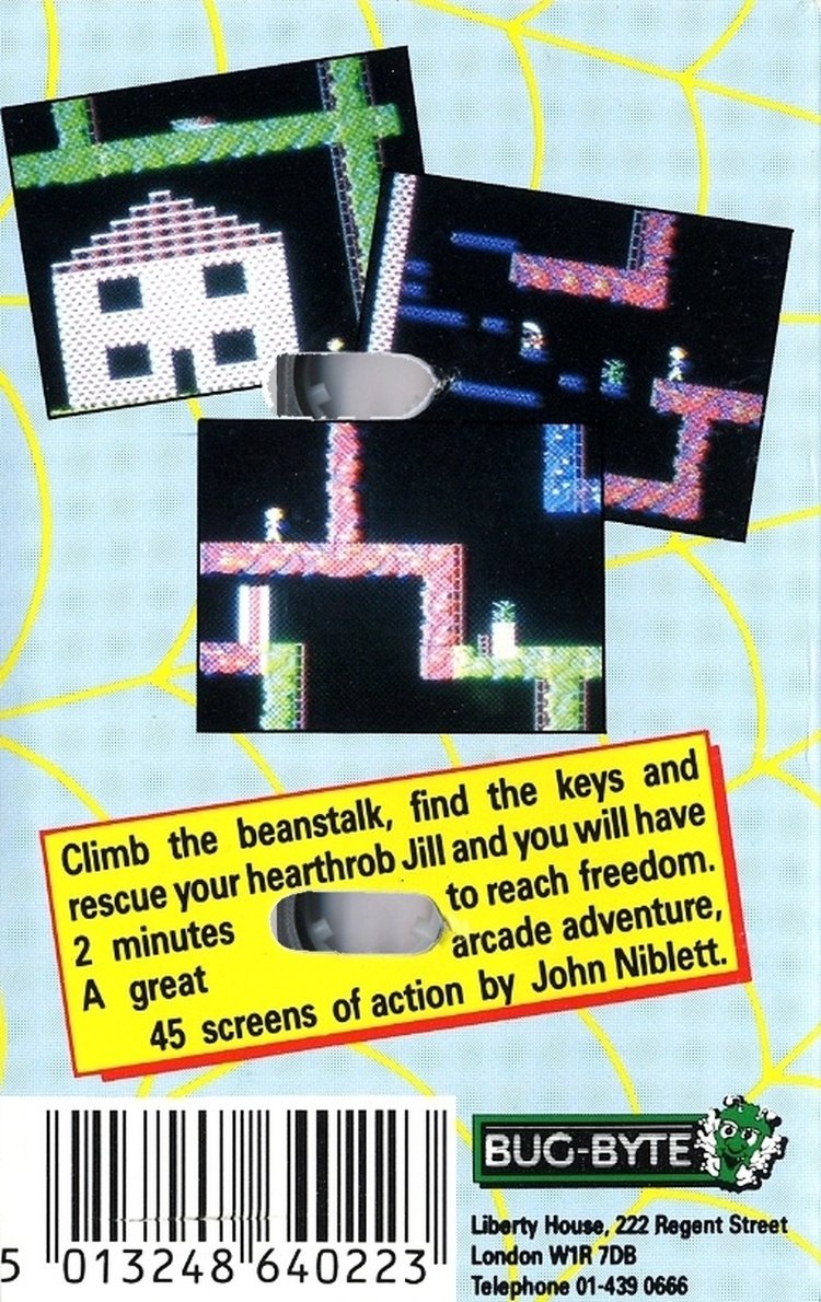Jill has been kidnapped by the giant in his castle in the clouds, and Jack must rescue her by finding the key to her cell. Jack can move laterally, jump, and climb ladders. If he falls too far or touches any dangers, he loses a life.
