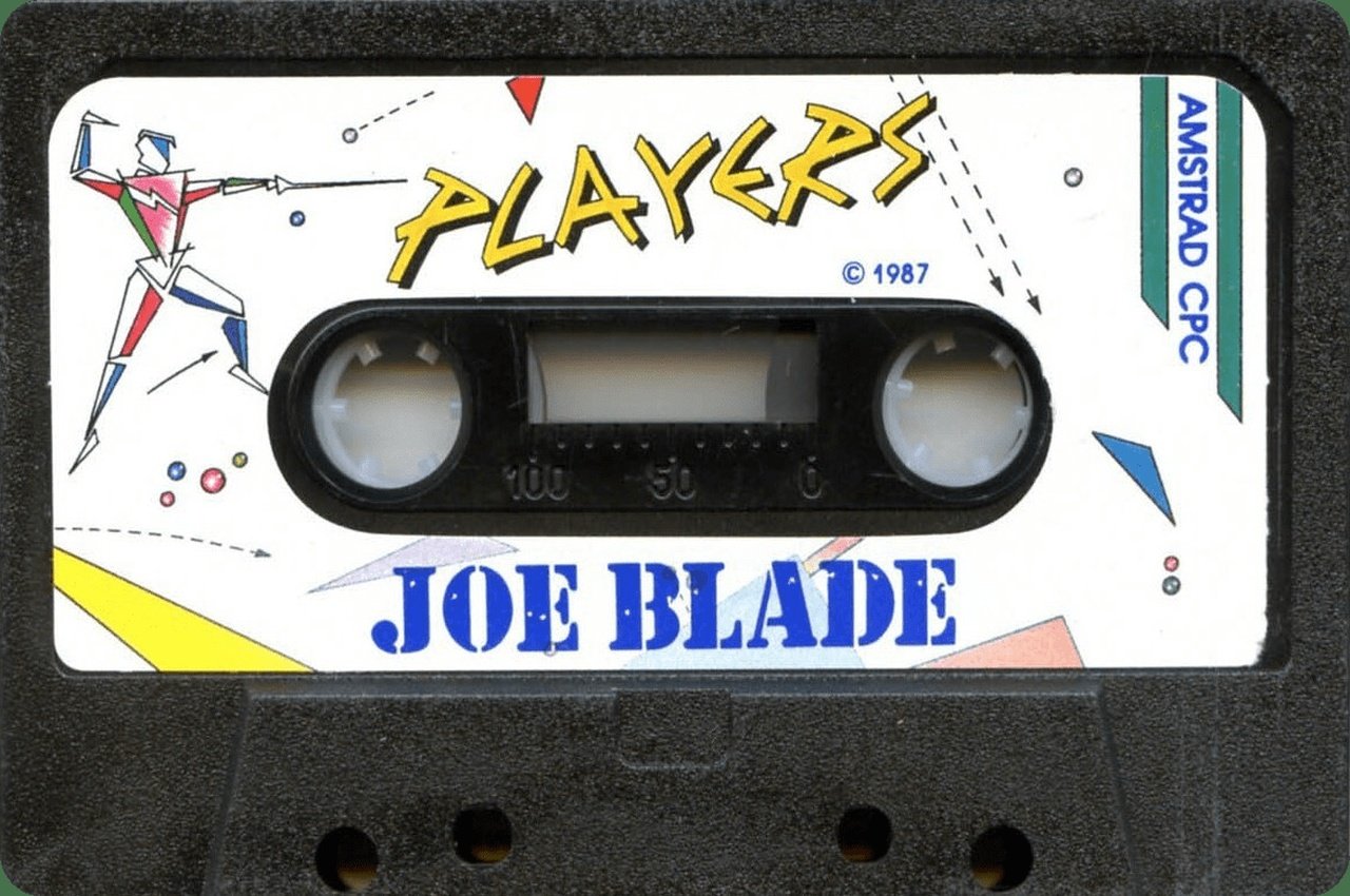 Tough guy Joe Blade must rescue six respected leaders from the madcap Crax Bloodfinger, who has kidnapped them in different areas of his base. Along the way he will find six bombs which must be activated, leaving him with only 20 minutes to rescue everyone. Joe Blade is viewed side-on and uses flick-screen progression. The bombs are deactivated by arranging letters into alphabetical order, but the bulk of the gameplay involves shooting and maze navigation. The screens are linked in various ways, and contain a number of keys which must be used correctly.
