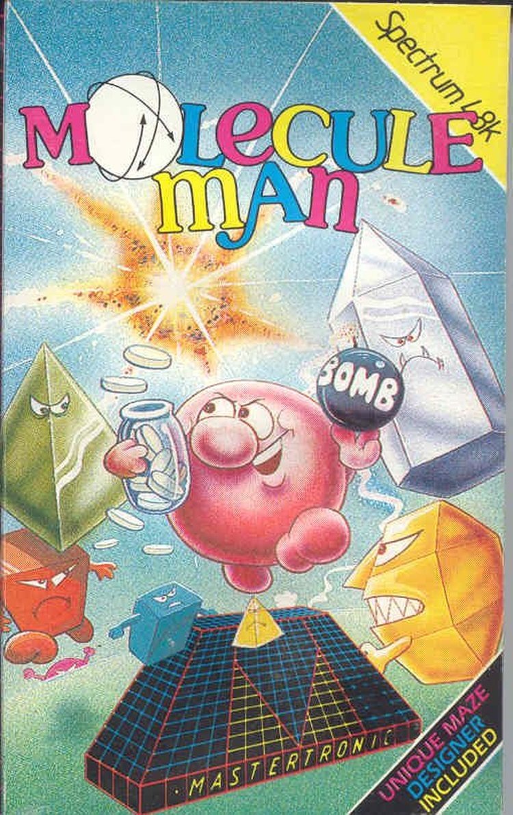Molecule Man is trapped inside a radioactive maze of 256 screens, and it’s your job to get him out. To do this you must collect 16 circuits which are located at extreme points of the levels. You must regularly consume radiation tablets to fend off certain poisoning, and your initial supply of 20 is totally inadequate.