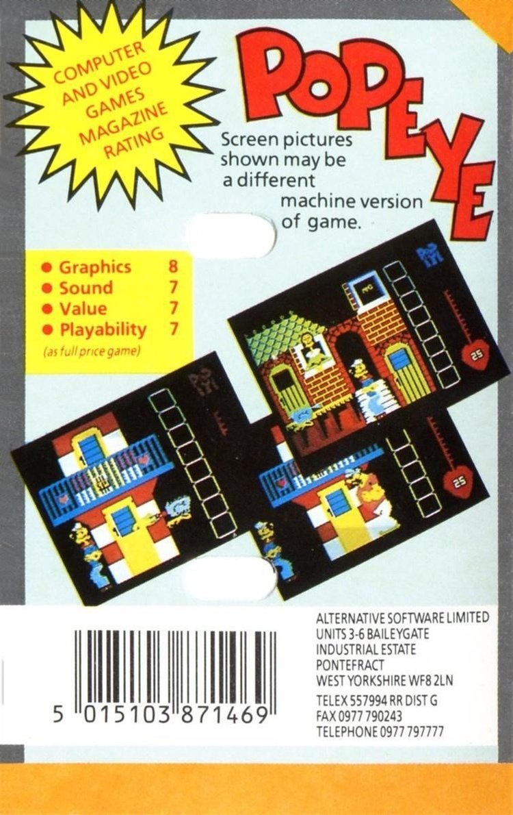 The game boasts a ‘clever multidimensional effect’ which allows Popeye to go behind the scenery and go through doors.