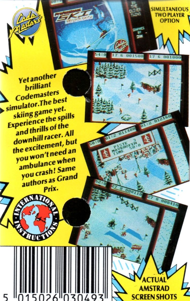 Players have to guide a skier down the piste in the specified time limit. The ski is against a competitor but the clock is the main enemy because if the player doesn’t cross the finishing posts in time it is game over. The controls are fairly simple: left and right on the joystick rotates the skier and the fire button propels the player character forward with his sticks. Avoid obstacles such as trees, gates or log cabins.