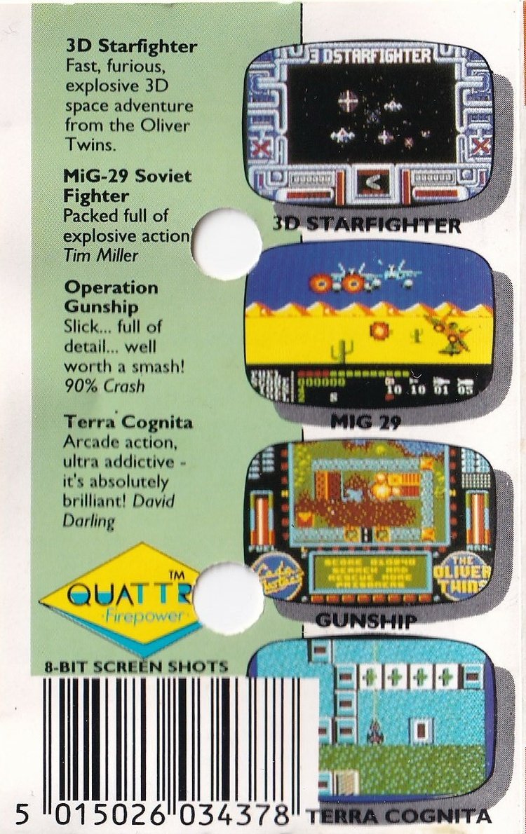 Released by Codemasters, this popular budget title bundles four action-packed games onto a single cassette, offering fantastic value and nostalgic gameplay from the late 80s / early 90s era.