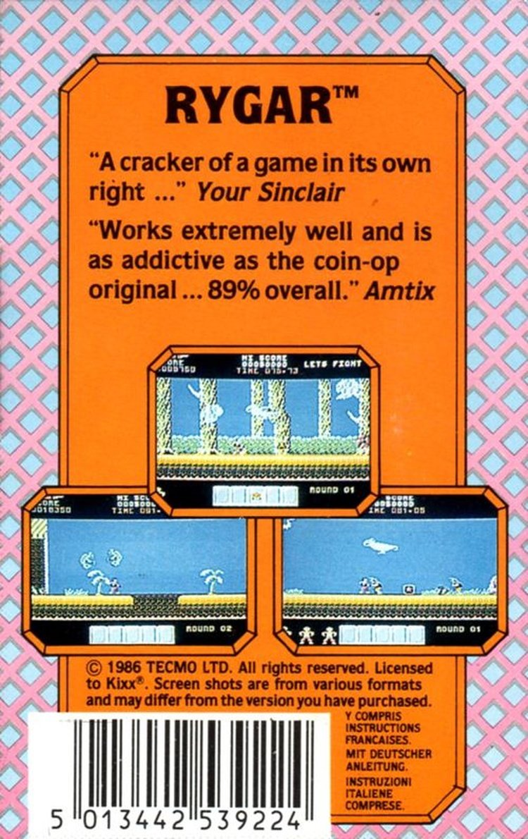 Amstrad CPC, Rygar, Kixx, retro gaming, cassette game, vintage computer games, 8-bit games, arcade action