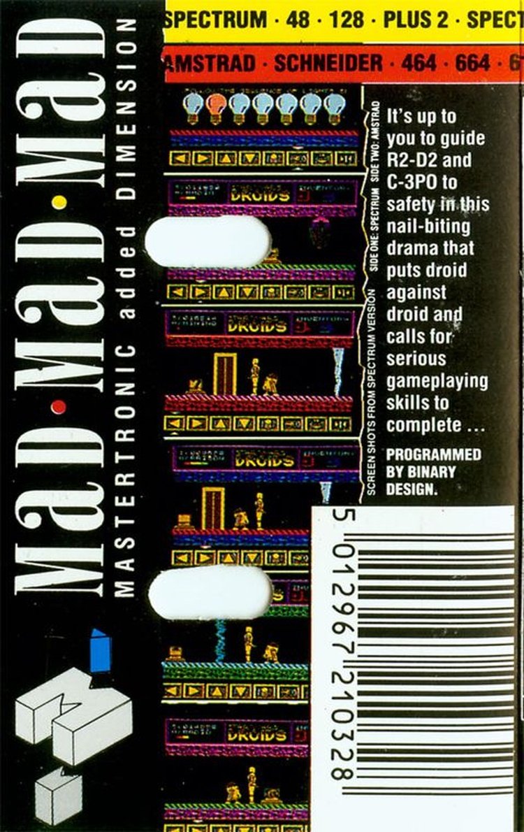 In this platformer title with puzzle elements, the droids find themselves prisoners of the Fromm Gang, and must escape a series of traps and hostile droids and traps, including seekers, droid maintenance crews and various droid guards.