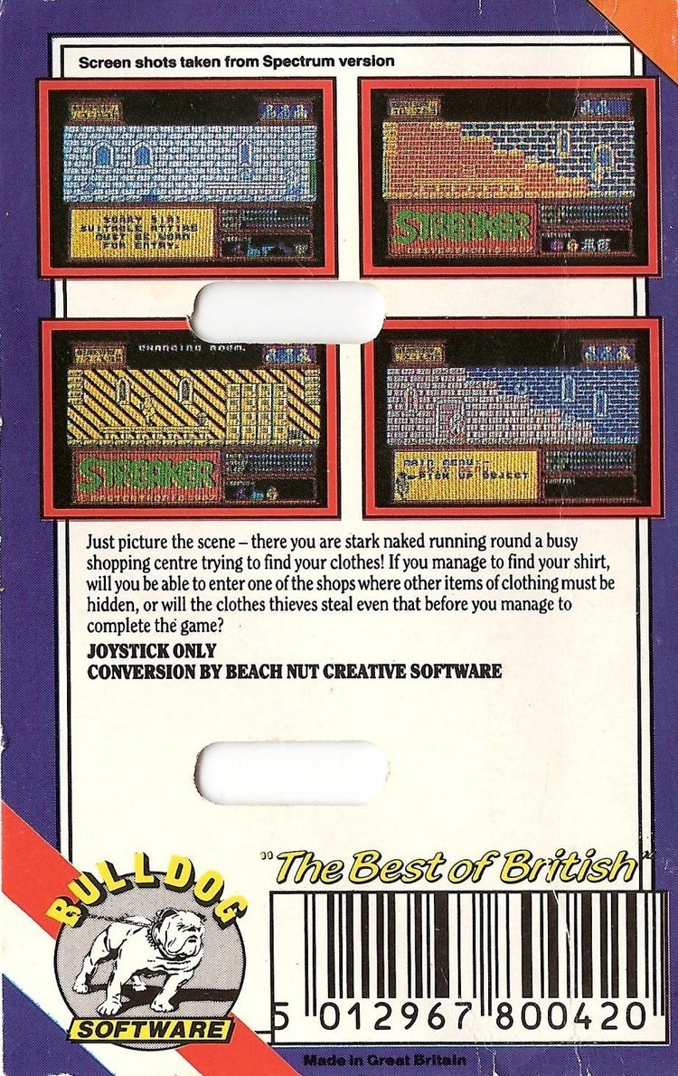 You are a streaker with not a stitch on you, in the streets. As you go from room to room you must try and collect as much of your clothing as possible; the more clothes you find the more areas of the game you can go to. You can pick items up such as food to keep your energy up; some shops will only open at different times to make things difficult. Be quick to find your clothes or they can get pinched.