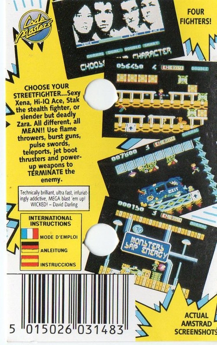 It’s 2125… Crime baron Emilio Bocker rules the grim futuristic wastelands and towering tenements of Los Angeles from his lair hidden amongst the apre-meltdown debris of a society that has gone terribly wrong. He exerts a vice-like grip on the remains of a once healthy economy, terrorising and destroying what is left of the populace. It’s been obvious for years that something must be done… The time is now right – a new generation of street fighter has emerged with the special skills necessary to infiltrate Bocker’s retreat, wipe out his minions then finally BLOW HIM AWAY!!!